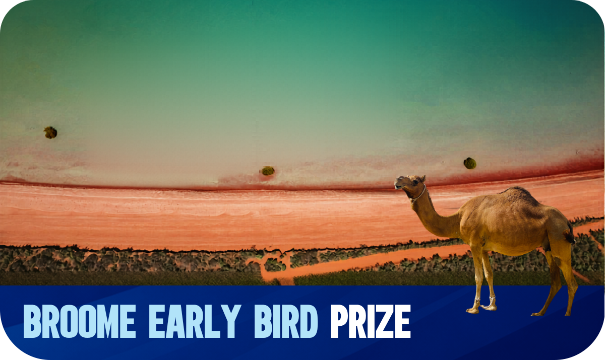 Buy early and you’re also in the running for the Early Bird prize: $5,000 tax-free cash or a trip to Broome for two.